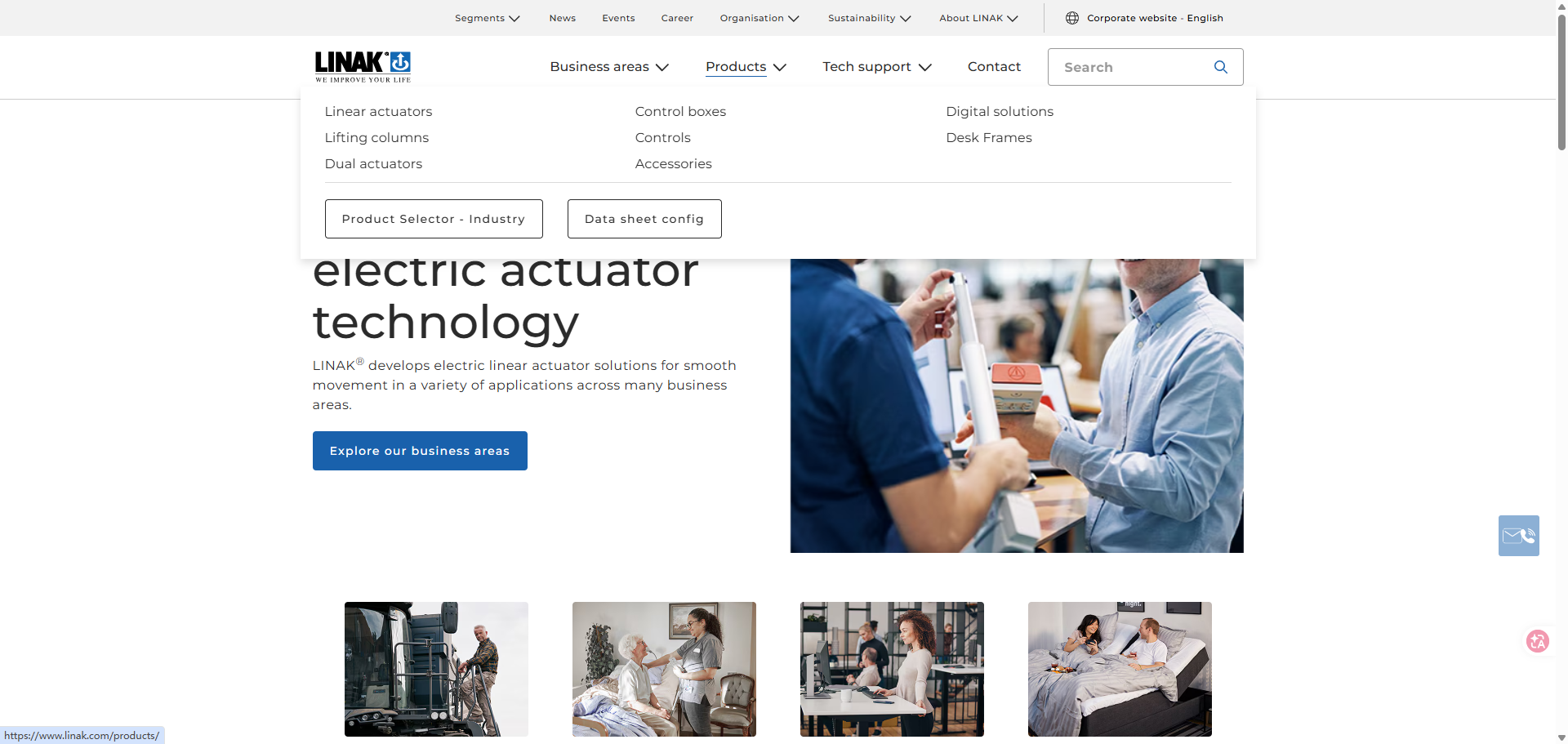 LINAK Medical equipment, hospital beds, office furniture, adjustable desks, ergonomic chairs