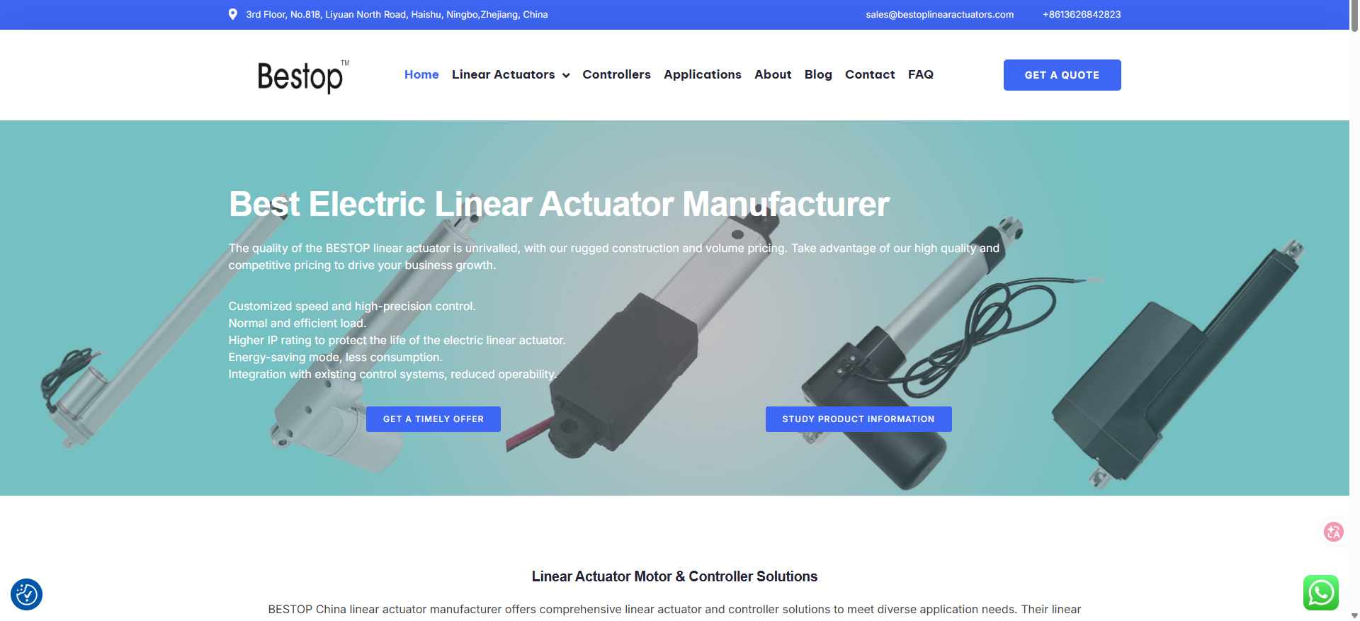 Company Overview: Bestop focuses exclusively on linear actuators for OEM and industrial applications. Known for flexible customization, stable supply, and cost-effective solutions.